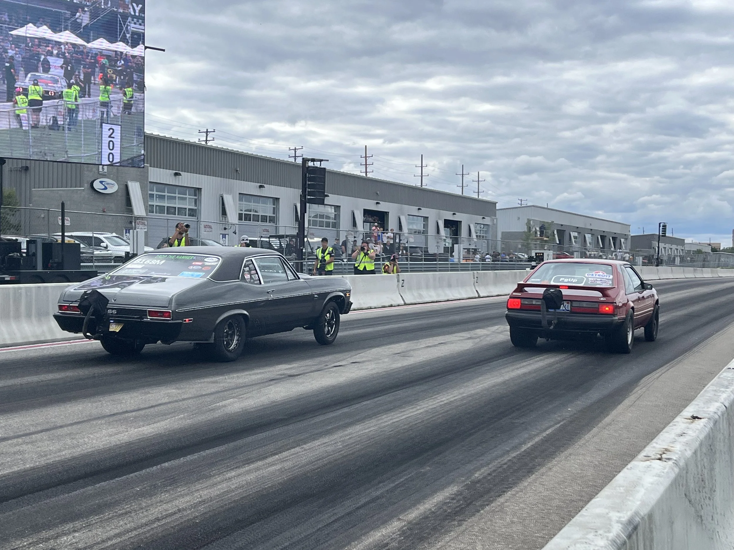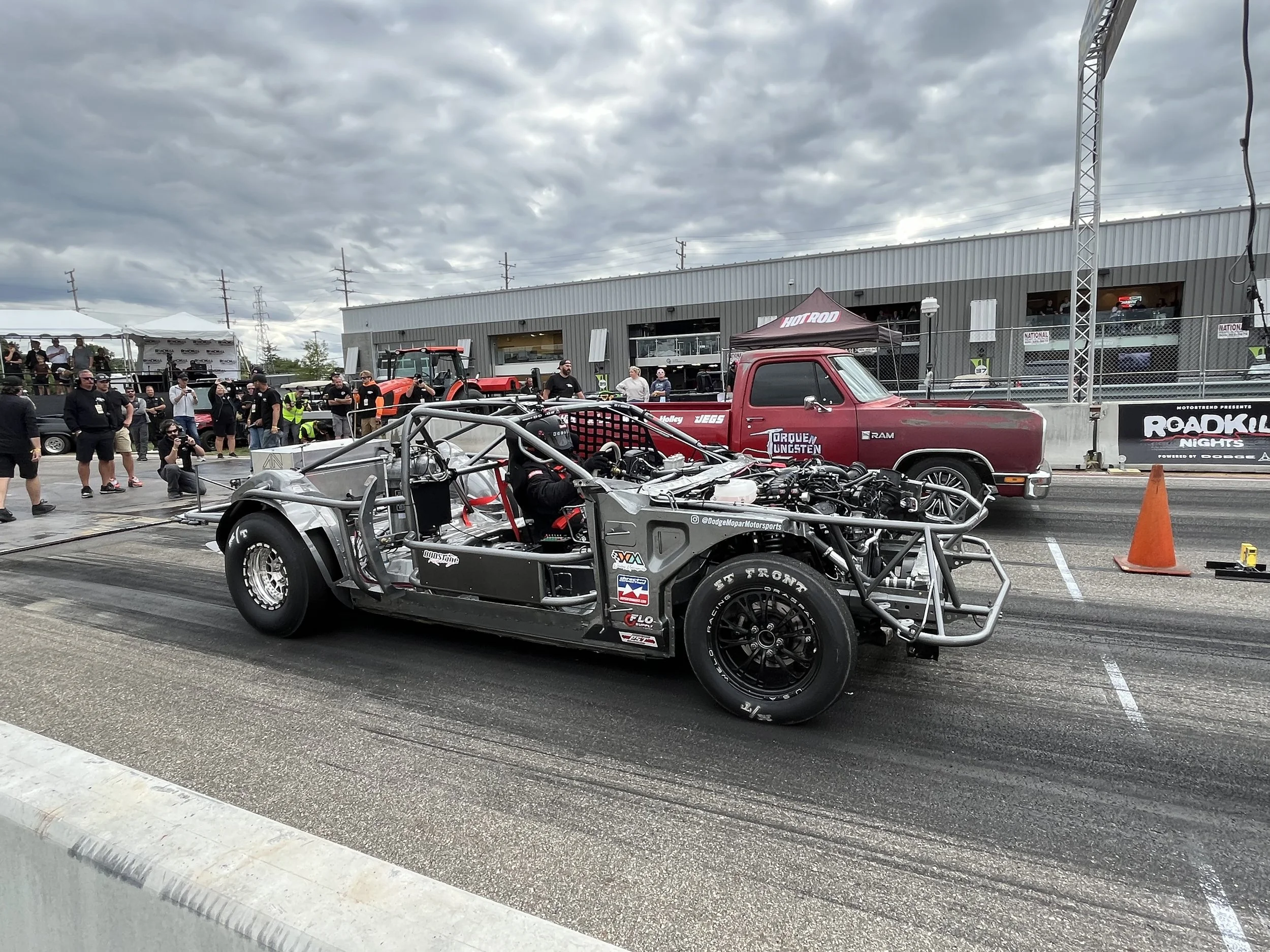 Due to M1 Concourse requests, the straightaway was unprepped, and with a 30 foot width, competitors might not have felt as inclined to “ride it out” as in years past. After nearly six hours of open track time for competitors to get familiar with the new surface, the Top 8 in both Big Tire and Small Tire were announced, and given a short amount of time to prep for round one.