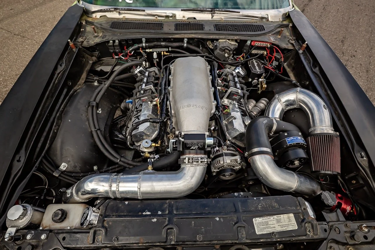 The plan changed, and when the car showed up at Sick Week 2025 Presented By Gear Vendors Overdrive it appeared with a BluePrint Engines 540 backed by a Stage 4.5 FTI Turbo 400. Accommodations were made for a F1A-94 Procharger, but that would not appear until 2026.